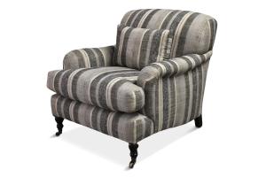 Chair Black/Grey Stripe Motif w/Kidney Pillows & Brass Casters