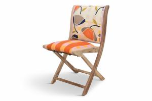Chair Folding Wood Frame w/Orange Poppies Fabric