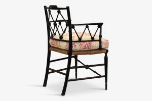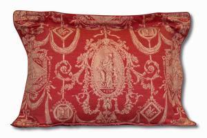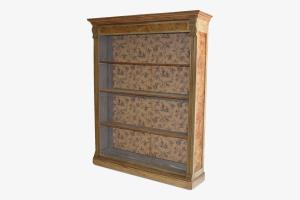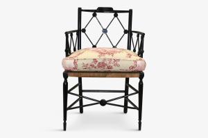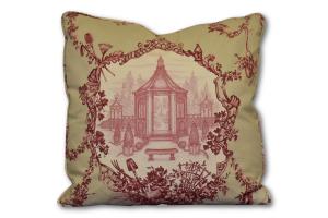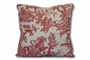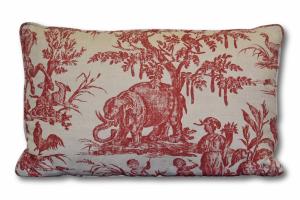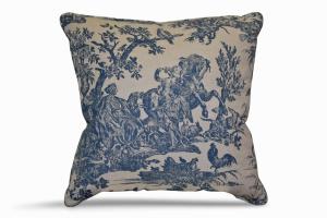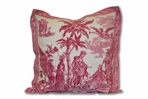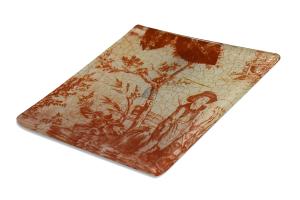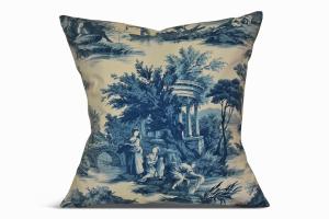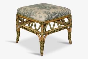 Table Toile Fabric w/Lacquered Wicker & Glass Top