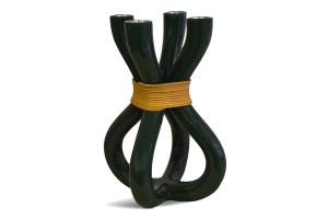 Candelabra 4 Green Powder Coated Sculptural Arms w/Rattan Midsection
