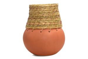Placemat Round Natural Woven w/Pink/Yellow/Orange/Blue Trim