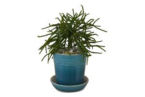 Faux Succulent in Light Blue Le Creuset Pot/Saucer