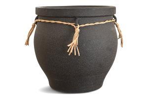 Pot Black Ceramic w/Sisal Rope Ties