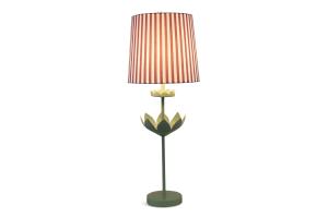 Lamp Moss Paper Mache Posies w/Red/White Striped Shade