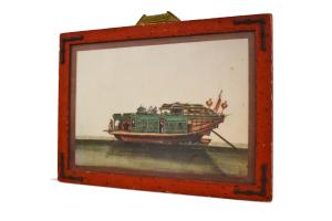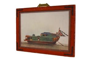 Print Ostrich in the Okavango Delta Mist w/Vintage Gold Ribbed Frame