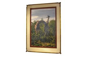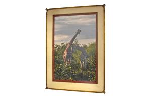 Photograph Loving Giraffes Left Leaning in the Okavango Delta w/Vintage Gold Leaf Frame
