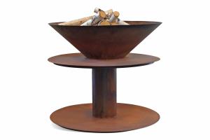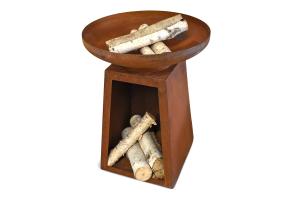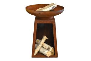 Fire Pit Rusted Finish Elevated Pedestal Bowl w/Tapered Base Log Compartment (Firewood Not Included)