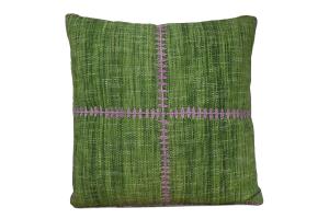 Pillow Indoor/Outdoor Green w/Lavendar Cross Stitching Embroidery