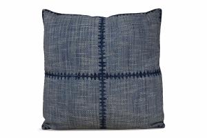 Pillow Indoor/Outdoor Blue w/Dark Blue Cross Stitching Embroidery