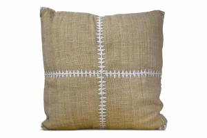 Pillow Indoor/Outdoor Tan w/Cream Cross Stitching Embroidery