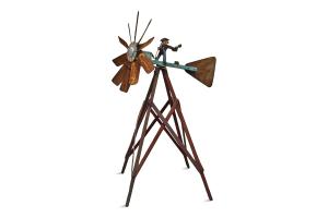Vase/Planter Vintage Corrugated Tin w/Round Twisted Handle