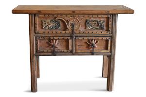 Table Console Wood Carved w/Nailheads