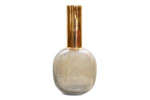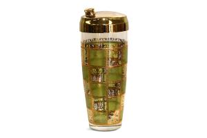 Decanter Vintage Green/Gold Glass w/Brass Lid