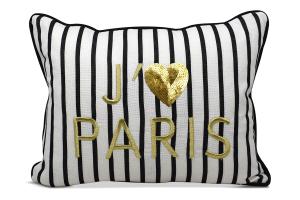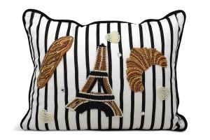 Pillow Black/White Stripes w/Beaded Eifel Tower, Croissants & "Paris"