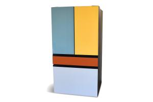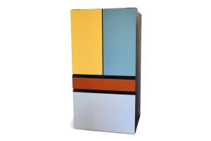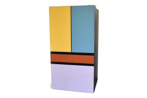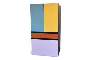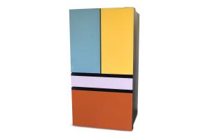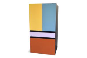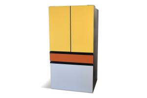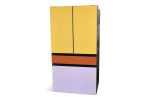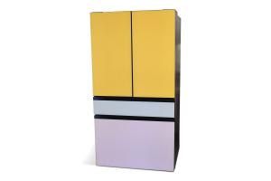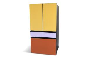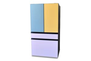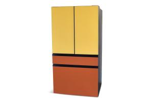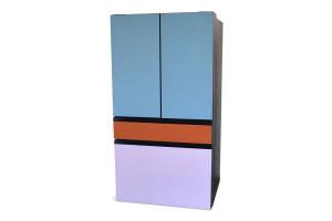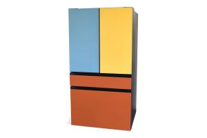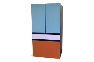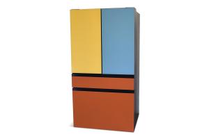 Refrigerator Yellow/Blue Glass French Doors & Orange Freezer Drawer w/Interior Drink Carafe/Dispenser & Open Back to Film Through