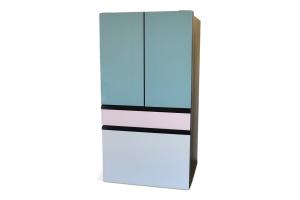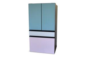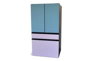 Refrigerator Blue/Yellow Glass French Doors & Pink Freezer Drawer w/Interior Drink Carafe/Dispenser & Open Back to Film Through