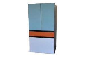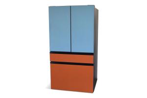 Refrigerator Blue/Yellow Glass French Doors & Orange Freezer Drawer w/Interior Drink Carafe/Dispenser & Open Back to Film Through