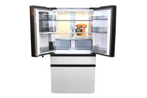 Refrigerator Blue/Yellow Glass French Doors & White Freezer Drawer w/Interior Drink Carafe/Dispenser & Open Back to Film Through