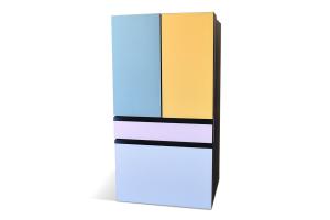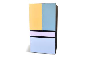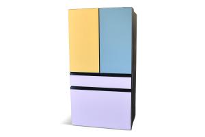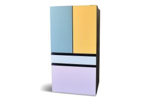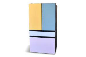 Refrigerator Yellow/Blue Glass French Doors & Pink Freezer Drawer w/Interior Drink Carafe/Dispenser & Open Back to Film Through