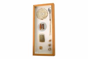 Shadowbox Used Kitchen Items w/Silver Spoon