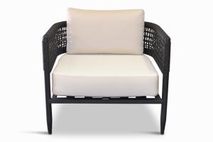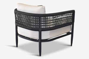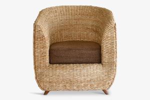 Chair Indoor/Outdoor Barrel Brown Rope w/Off-White Cushions