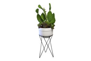 Cactus Live Opuntia Prickly Pear in White Bowl Planter on Black Hairpin Leg Stand