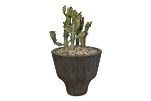 Cactus Live Euphorbia Dragon Tree Bones in Grey Ribbed Planter
