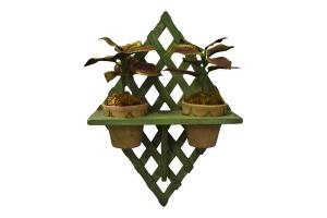 Shelf/Pot Holder Green Lattice w/2 Scallopped Edge Terracotta Pots & Faux Coleus