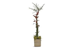 Shrub Live Pyracantha Firethorn and Portulacaria Elephant Bush in Square Travertine Planter