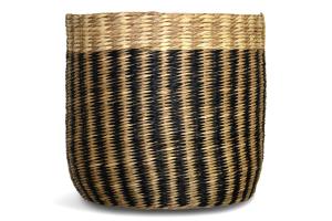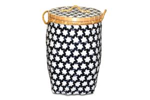 Basket Laundry Rattan w/Brown Stripes & Lid