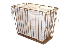 Basket Laundry Rectangular Frame w/2 Compartments Linen Lining