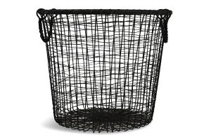 Basket/Hamper Laundry Steel Grey w/Leather Trim on Wheels