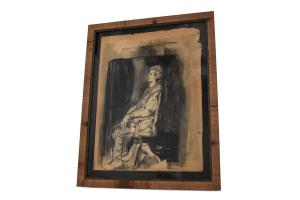 Print "Jake" Charcoal Drawing by Lynda Burbank w/Brown Frame