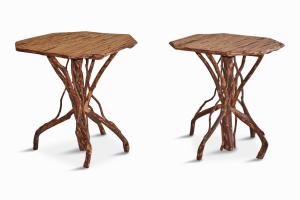 Table Lemieux et Cie Travertine Stone Grey & Cream Asymmetrical Mixed Slabs
