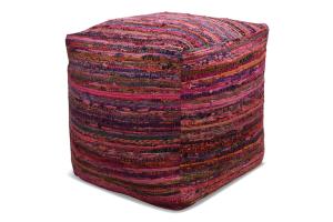 Pouf Multi-Colored Magenta Rag Rug Striped