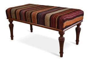 Ottoman/Coffee Table Dark Wood Frame w/Red & Orange Kilim Rug Top