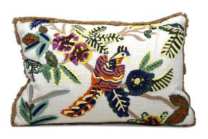 Pillow Indoor/Outdoor Tan w/Cream Cross Stitching Embroidery