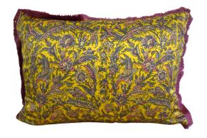 Pillow Yellow Linen w/Chevron Embroidered Detailed Piping