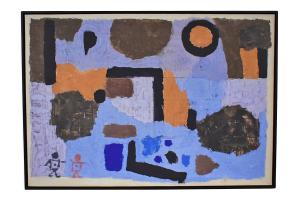 Print "The Mirage" Collage & Acrylic Paint on Paper by Don Diers w/Natural Frame (Cleared)