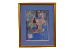 Print Blue Abstract w/Gold Frame (Cleared)