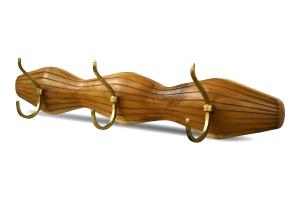 Coat Rack Grooved Wood w/3 Brass Hooks