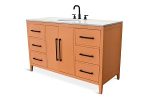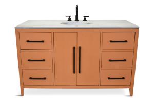 Bathroom Vanity Orange w/Marble Top & Matte Black Fixtures & Hardware