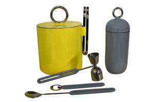 Ice Bucket Yellow w/Tongs and Chrome Ring