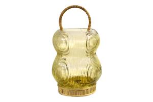 Lantern Ribbed Tinted Yellow Glass w/Rattan Handle & Base