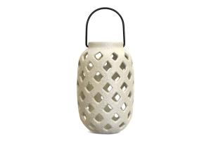 Lantern White Earthenware w/Square Cutouts & Black Handle