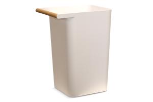 Waste Basket White Plastic w/Wood Handle
