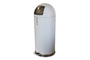 Trash Can White Enameled Bullet w/Step Pedal
