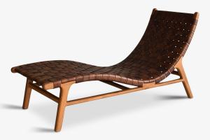 Chaise Lounge Brown Leather Woven