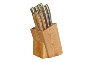 Knife Block 4 Natural Wood Knives/6 Brushed Chrome Knives