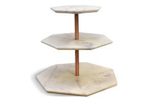 Pastry Stand 3 Tiered Hexagonal Carrera Marble w/Copper Frame